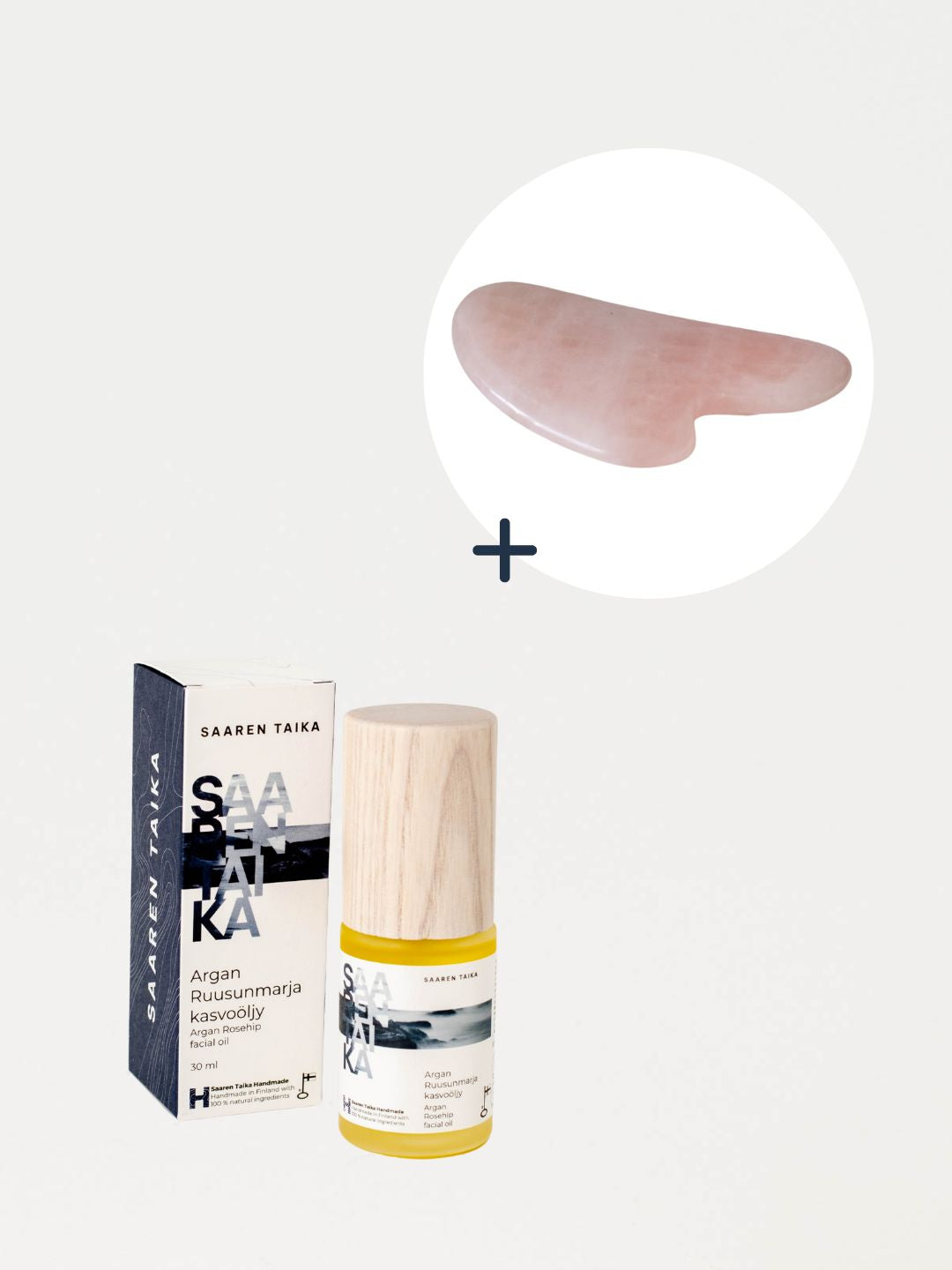 The products in the relaxing Gua Sha facial care set relieve tension in facial muscles, reduce swelling, and firm and care for facial skin.