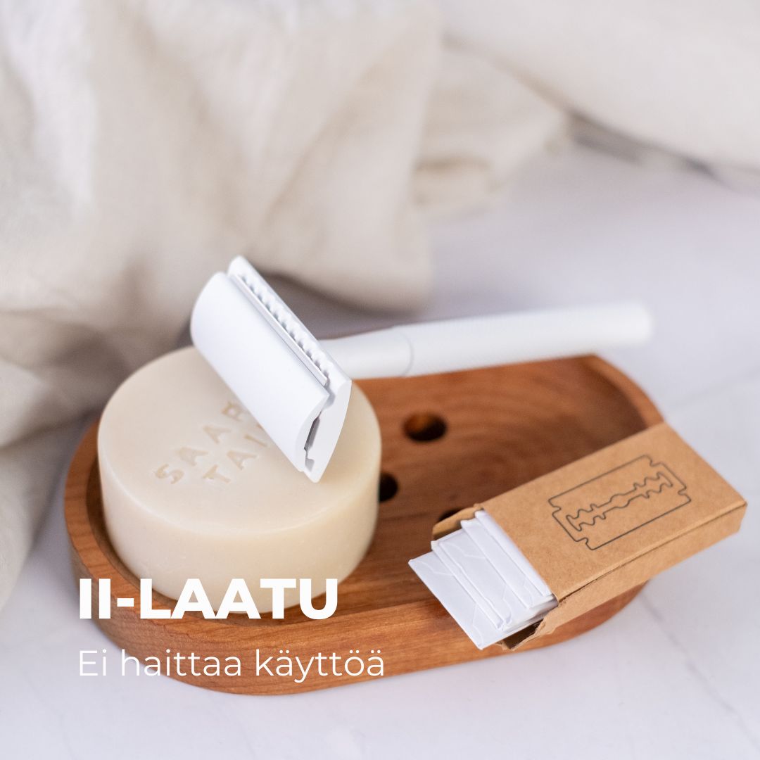 The Saaren Taika Ecolution eco-razor is suitable for all types of shaving. It is equipped with a weighted head, which allows the blade to glide effortlessly and precisely over your skin.