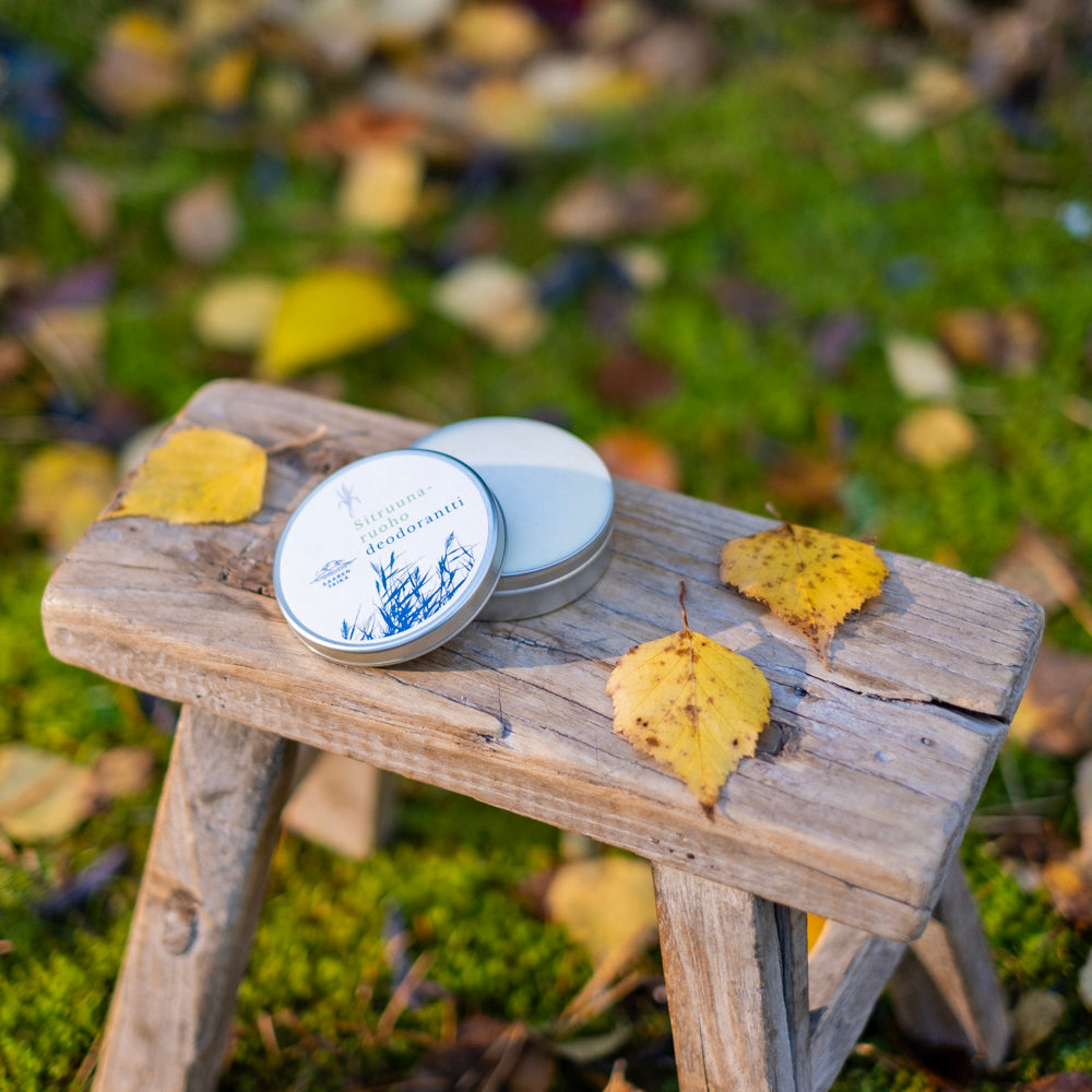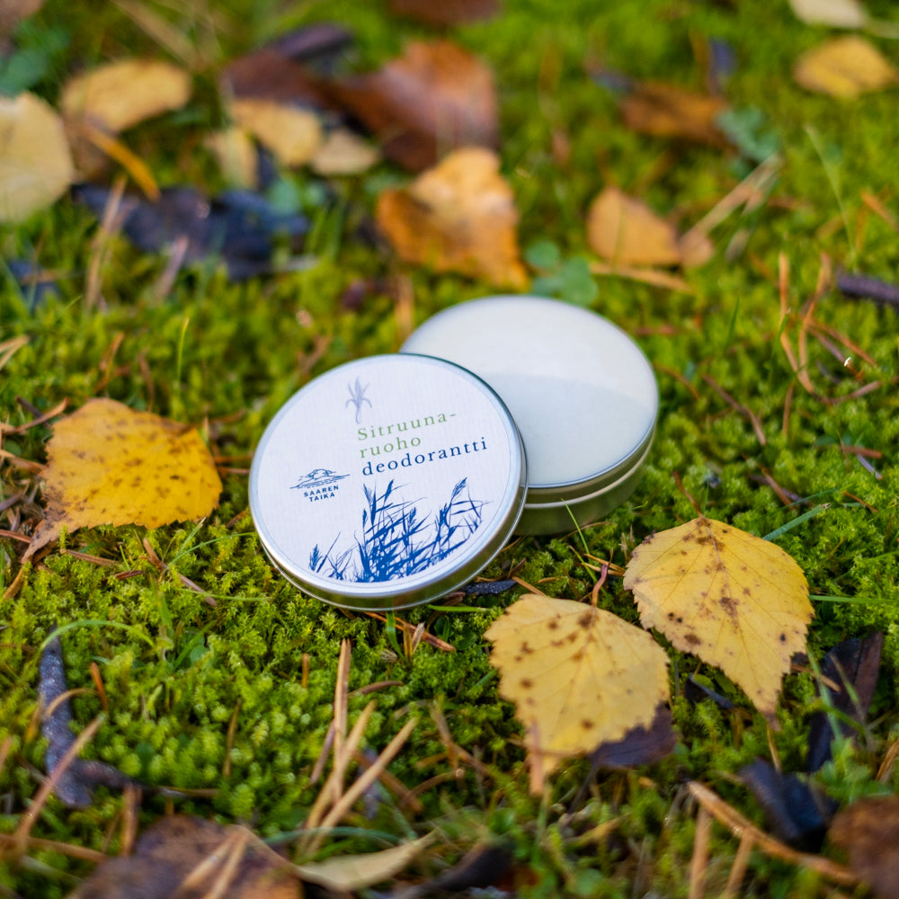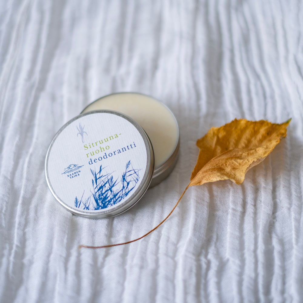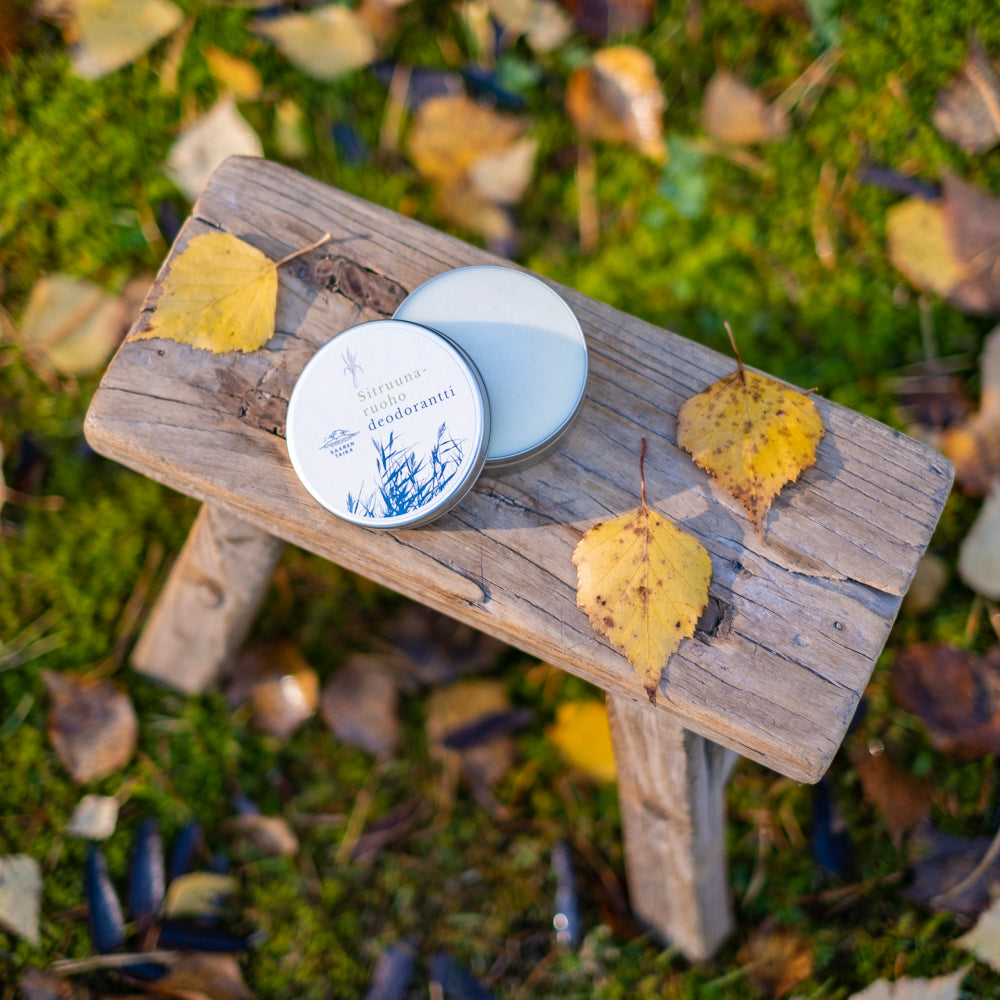 Saaren Taika voidedeodorantit on valmistettu käsin Suomessa 100% luonnollisista ainesosista, ne ovat vegaanisia ja eläinkokeettomia.