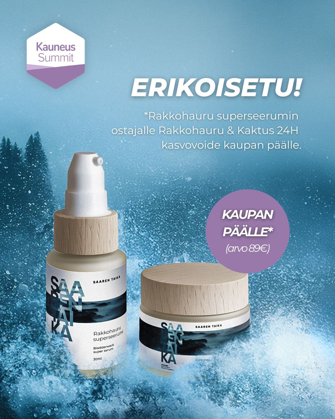 KauneusSummitin kunniaksi saat ainutlaatuisen edun, jota ei tule toiste! Osta Rakkohauru superseerumi ja saat Rakkohauru & Kaktus 24H kasvovoiteen kaupan päälle