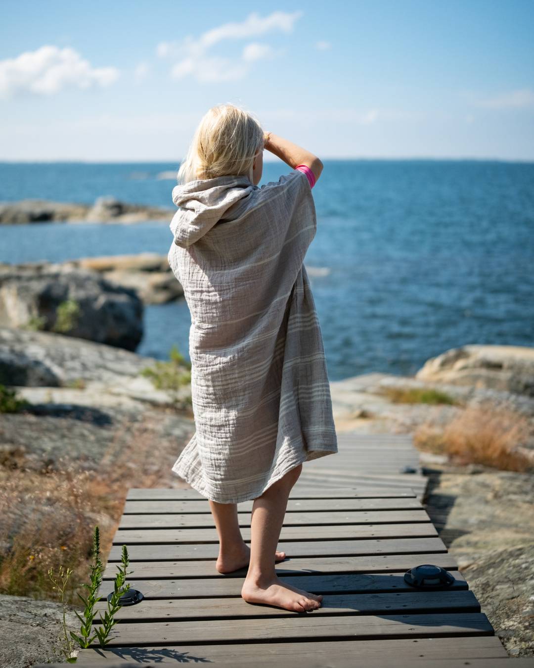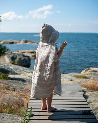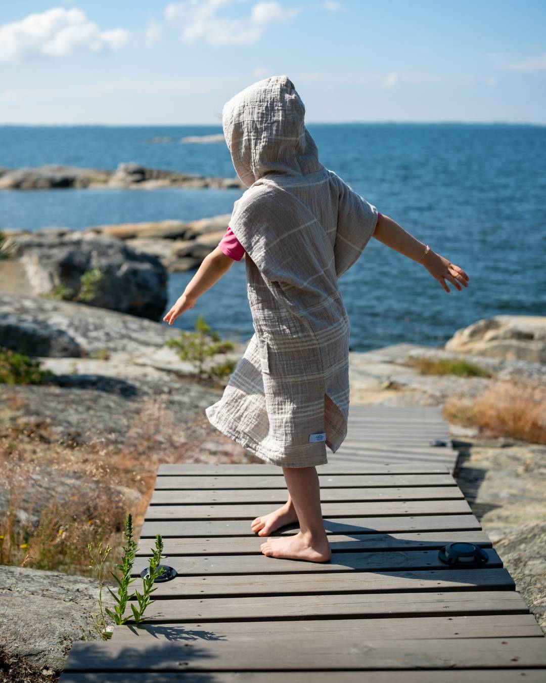 Lasten kylpyponcho kuivuu nopeasti silti säilyttäen pehmeytensä, minkä ansiosta se tuntuu käytössä erityisen miellyttävältä. Kylpyponcho on myös kätevä ottaa mukaan matkoille, kylään, uimaan, mökille tai minne vaan! Lasten kylpyponchon käytännöllinen huppu suojaa lapsesi päätä esimerkiksi auringolta tai tuulelta, ja se on helppo pukea ja riisua kiireisinäkin hetkinä.