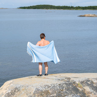 Rentoudu pehmeän Saaren Taika hamam-pyyhkeen syleilyssä. Nämä kookkaat ja imukykyiset pyyhkeet ovat aitoa turkkilaista käsityötaitoa, joka on periytynyt sukupolvelta toiselle.
