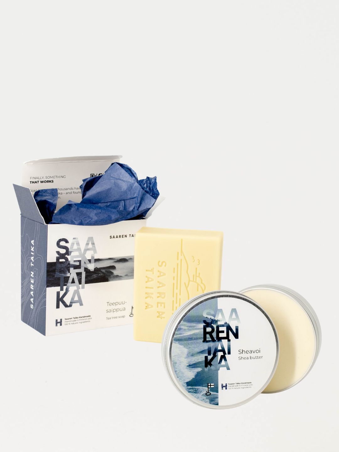 Saaren Taika tea tree tvål innehåller naturliga ingredienser, såsom tea tree oil, som hjälper till att balansera hudens talgproduktion och förhindra igentäppta porer. Det lugnar också irriterad hud och kan hjälpa till att minska inflammation.