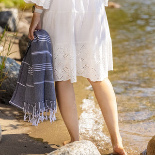 En hamamhandduk är inte bara en badhandduk. Den kan även användas som picknickfilt, halsduk, sarong, strandhandduk och många andra praktiska vardagstextilier. Den är mycket absorberande och torkar snabbt, vilket gör den perfekt för resor, stuga, båt, backpacking eller skola!