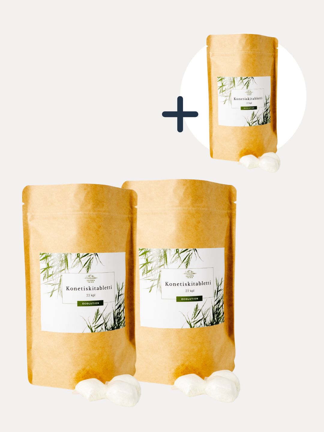 Saaren Taika Ecolution konetiskitabletit soveltuvat myös pikaohjelmalla käytettäväksi, sekä käytettäväksi matalammissa lämpötiloissa.